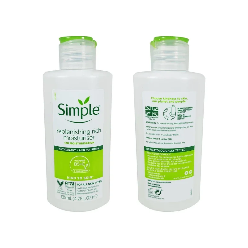 آبرسان ریچ سیمپل جزو پرفروشترین محصولات برند سیمپل است که برای پوست های خشک، خیلی خشک و حساس ایدهآل است. این مرطوب کننده ریچ سیمپل حاوی ترکیبات تغذیه و رطوبت رسان و سرشار از ویتامینها است که پوست شما را تا 24 ساعت آبرسانی کرده و از خشکی، دهیدراته شدن پوست و بروز چین و چروک های ناشی از خشکی جلوگیری میکند. ابرسان سیمپل ریچ، یک مرطوبکننده غنی از ویتامین است که پوست را نرم و مرطوب میکند. ویتامین پرو B5 موجود در ترکیبات کرم سیمپل ریچ پوست را رطوبت رسانی و تغذیه رسانی میکند؛ همچنین این محصول غیر کمدون زا است و باعث مسدود شدن منافذ و ایجاد حساسیت نمیشود. آبرسان سیمپل دارای بافتی سبک و زود جذب است و بدون ایجاد حس چربی و سنگینی پوست شما را نرم و لطیف کرده و شادابی و درخششی طبیعی به آن هدیه میدهد.