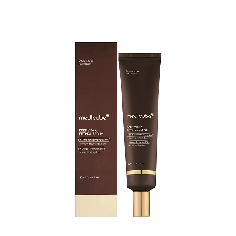 Medicube Deep Vita A Retinol Serum یک سرم تخصصی و درمانی از برند معتبر کرهای مدیکیوب است که با تمرکز بر کاهش علائم پیری، بهبود بافت پوست و رفع ناهماهنگی رنگ آن فرموله شده است. این سرم حاوی فرم خالص رتینول و ترکیبات تقویتکننده مانند نیاسینامید و ویتامین C است و برای افرادی طراحی شده که به دنبال راهحلی مؤثر برای کاهش چینوچروک، سفتی بیشتر و پوستی صاف و شفاف هستند.